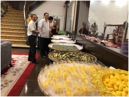 2018年11月16日至22日,应老挝有关方面邀请南通纺织丝绸产业技术研究院“高效集约化现代养蚕关键技术转移转化示范项目”暨“中老绿色丝绸中心蚕桑示范园”项目组参加了老挝一年一度的塔銮节盛会。塔銮节是老挝万象市规模最大、场面最隆重的传统宗教节日。项目积极响应国家“一带一路”战略倡议,发展新“丝绸之路”。通过以饲料代替新鲜桑叶养蚕,节约人力成本,提高桑蚕养殖的生产效率,在国内外率先实现养蚕现代化的转化示范,也为国内蚕桑丝绸生产拓展建立海外桥头堡。《中老绿色丝绸中心蚕桑示范园》位于老挝国首都万象市塞塔尼县萨帕卡农村(Saphakhanong village, Xaythanydistrict, Vientiane municipality),占地约10公顷,由im网页版登录入口、老挝女双手公司、苏州大学和老挝国家科技部等单位合作共建,并得到老挝苏州大学等单位的大力支持。 中方融合了传统技艺与现代科技的“江苏现代蚕桑生产过程”展厅,吸引了众多市民参观。